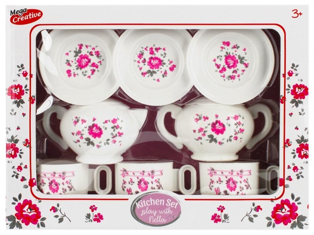 Opis produktuZasady bezpieczeństwaZalety produktu: rozwija kreatywność dziecka, pozwoli wcielić się dziecku w dorosłe życie i wykonywać podstawowe czynności domowe jak np. przygotowywanie kawy, herbaty. Zestaw kuchenny MEGA CREATIVE doskonale sprawdzi się podczas zabawy w przygotowanie pysznej herbatki, kawki. Tak bogate wyposażenie pięknych filiżanek i dzbanuszka może sprawić, że zabawa przerodzi się w prawdziwe przyjemne spotkanie przy herbatce! Zawartość zestawu: dzbanek na kawę, dzbanek na herbatę,3 x filiżanka, 3 x talerzyk. Wymiary/waga/baterie: wymiary produktu (dł. x wys. x gł.)[cm]: czajnik na kawę 11x8x6, wymiary produktu (dł. x wys. x gł.)[cm]: czajnik na herbatę 12x8x6, wymiar opakowania (dł. x wys. x gł.) [cm]: 46x32x8, waga produktu bez opakowania [kg]:0,14 kg, waga produktu w opakowaniu [kg]: 0,25 kg, nie wymaga zasilania bateriami. Zabawka przeznaczona dla dzieci w wieku: 3+. Pakowany w kartonik z okienkiem x
