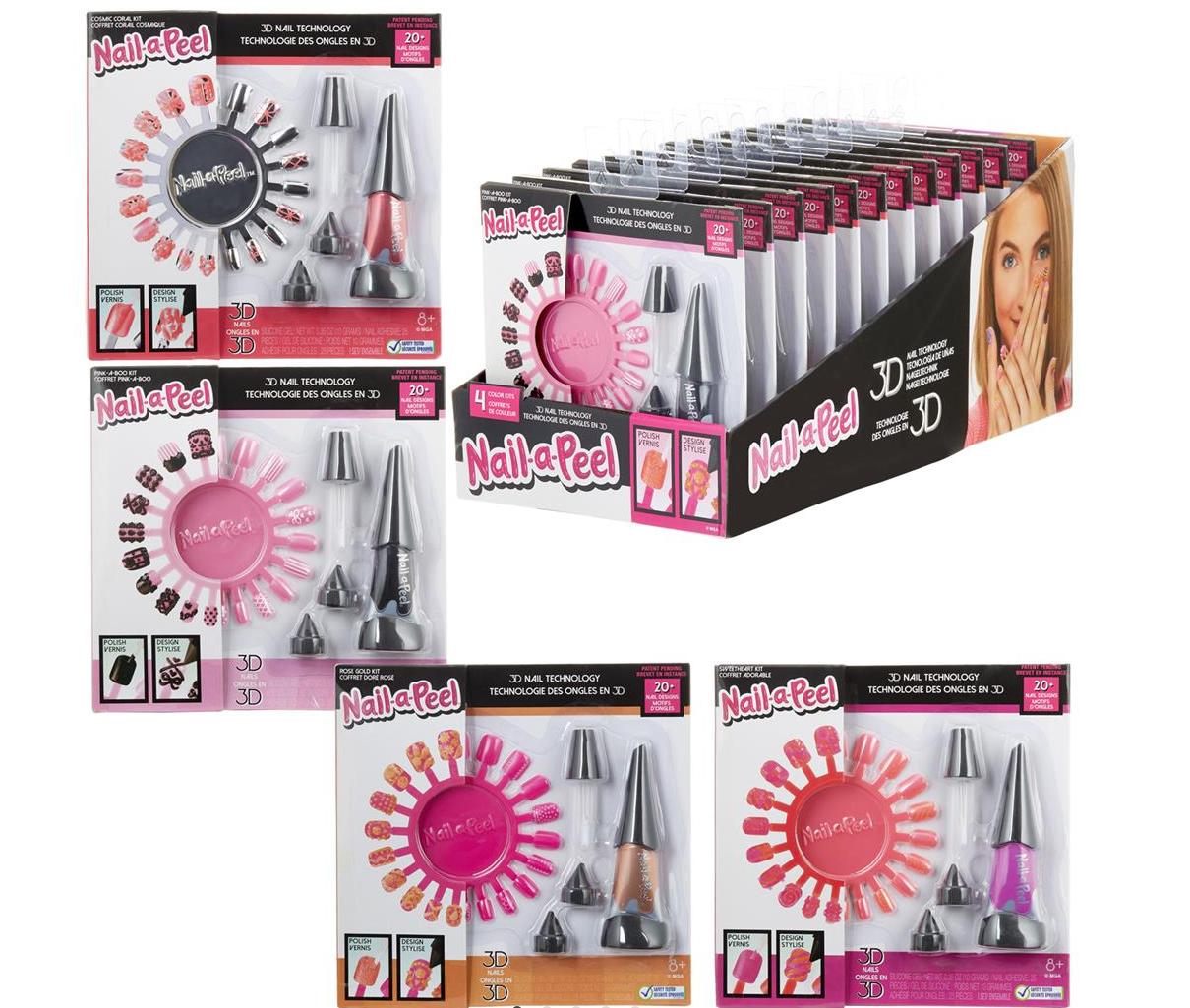 Nail-a-Peel OFERUJE ZUPEŁNIE NOWY KREATYWNY SPOSÓB ZDOBIENIA PAZNOKCI W 3D! UŻYJ ŻELU A NASTĘPNIE STWÓRZ KOMPOZYCJE 3D! UDEKORUJ PAZNOKCIE DODATKOWYMI OZDOBAMI! Każdy Zestaw Podstawowy zawiera::