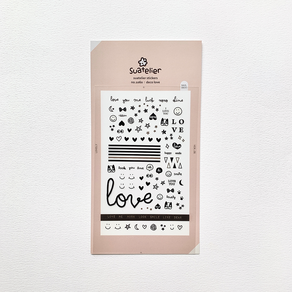 Opis produktuZasady bezpieczeństwa"Naklejki Deco Miłość czarne i srebrne koreańskiej marki Suatelier. Piękne i oryginalne naklejki samoprzylepne, które mogą być używane do ozdabiania notesów, kalendarzy, planerów, telefonów, kartek i wielu innych produktów, a także do dekoracji paznokci (pamiętaj, aby po naklejeniu na paznokieć uzyć bezbarwnego lakieru). Szeroka gama motywów, od prostych i eleganckich do bardziej fantazyjnych i kolorowych pozwala na dopasowanie naklejki do indywidualnego stylu i gustu, nadając osobisty akcent oraz unikalność. Wykonane z wysokiej jakości materiałów oraz drukowane za pomocą nowoczesnych technologii, aby zapewnić trwałość i żywe kolory. Naklejki wykonane z transparentnego tworzywa PVC. Wymiar arkusza 10x19 cm."