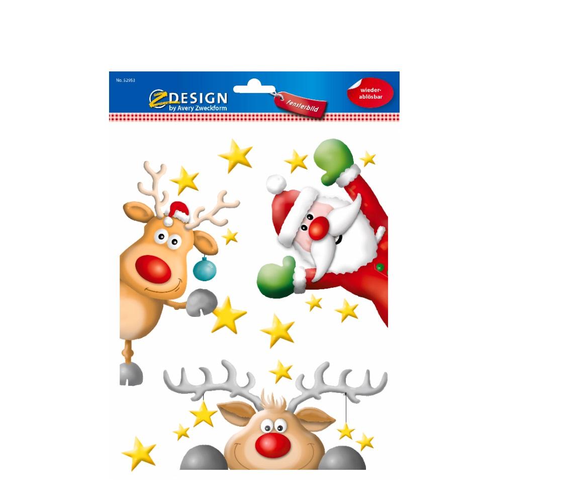 Naklejki foliowe na okno mikołaje oraz renifery.
