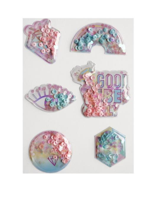 Naklejki z sypkimi cekinami Good vibes only.