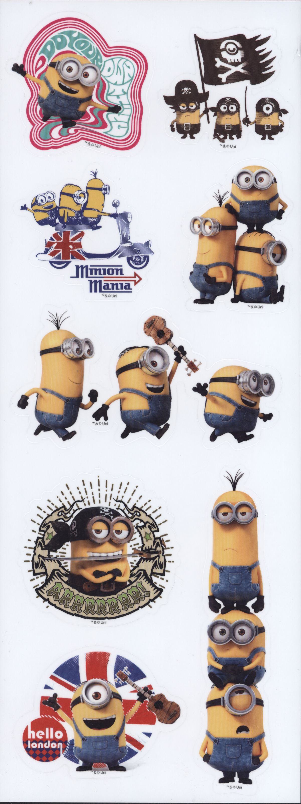 Zestaw naklejek z bohaterami serii bardzo popularnych filmów dla dzieci - Minionkami.