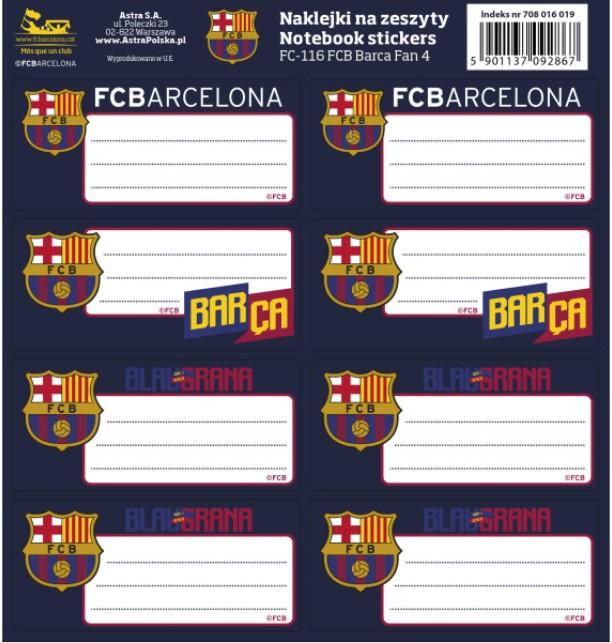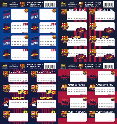 Naklejki na zeszyty FC Barcelona 50 arkuszy po 8 sztuk, różne wzory.
