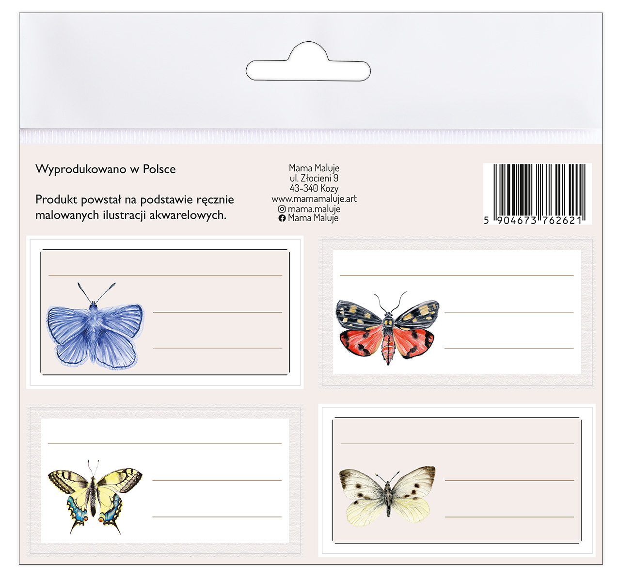 Opis produktuZasady bezpieczeństwaNaklejki na zeszyty lub książki mogą być piękne! Wyróżnij się i przyklej naklejkę z kolorową papugą, zachwycającym motylem, ulubionym pojazdem czy realistycznym pająkiem! W każdym zestawie znajduje się 8 sztuk naklejek o wymiarach 74 x 40 mm. Produkt powstał na podstawie ręcznie malowanych ilustracji akwarelowych. Wyprodukowano w Polsce. x