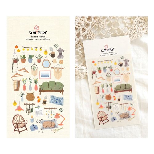 Opis produktuZasady bezpieczeństwa"Naklejki ozdobne Home Sweet Home koreańskiej marki Suatelier. Piękne i oryginalne naklejki samoprzylepne, które mogą być używane do ozdabiania notesów, kalendarzy, planerów, telefonów, kartek i wielu innych produktów. Szeroka gama motywów, od prostych i eleganckich do bardziej fantazyjnych i kolorowych pozwala na dopasowanie naklejki do indywidualnego stylu i gustu, nadając osobisty akcent oraz unikalność. Wykonane z wysokiej jakości materiałów oraz drukowane za pomocą nowoczesnych technologii, aby zapewnić trwałość i żywe kolory. Naklejki wykonane z tworzywa PVC. Wymiar arkusza 10x19 cm." x