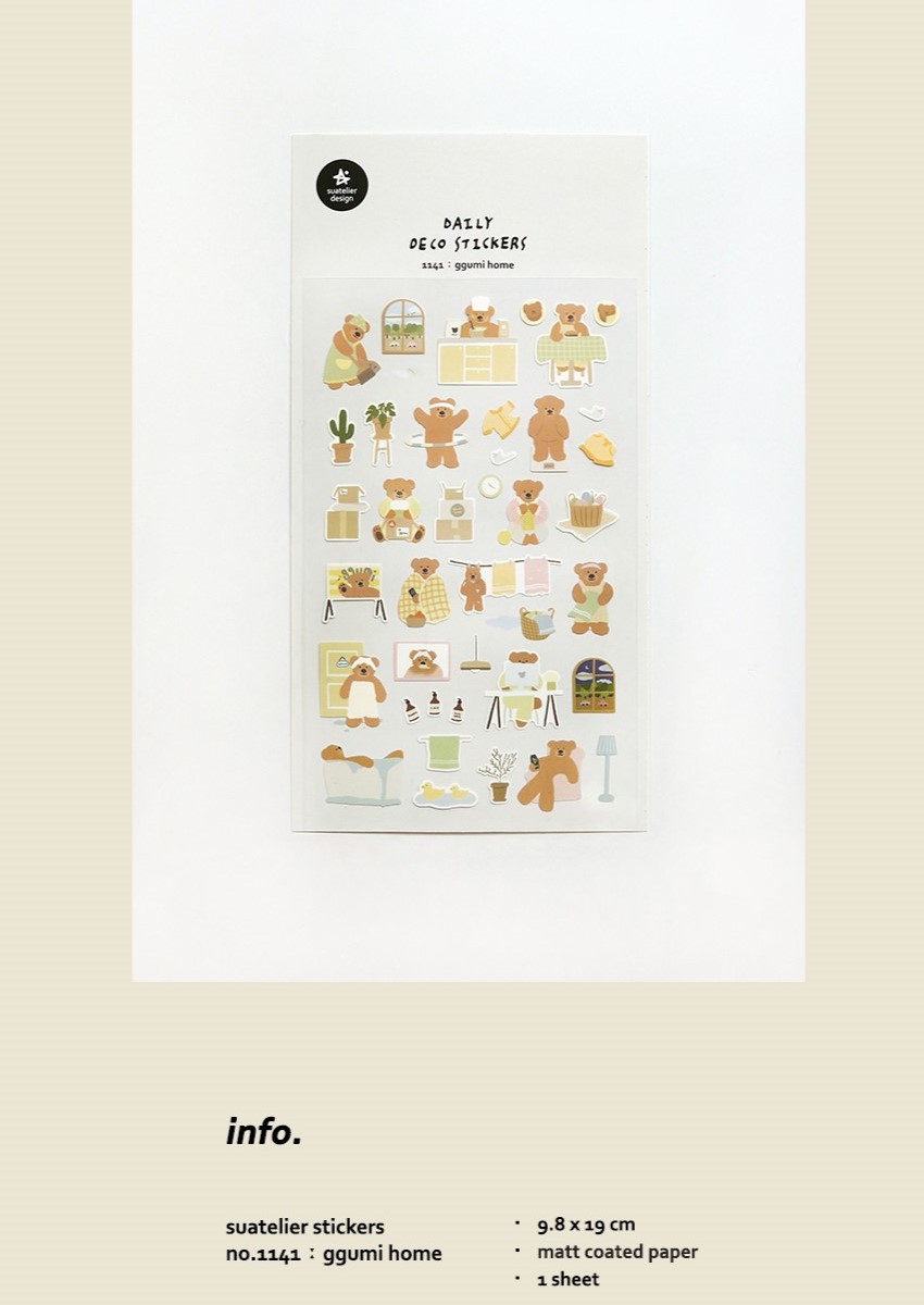 Opis produktuZasady bezpieczeństwaNaklejki ozdobne Misiowy dom koreańskiej marki Suatelier. Piękne i oryginalne naklejki samoprzylepne, które mogą być używane do ozdabiania notesów, kalendarzy, planerów, telefonów, kartek i wielu innych produktów. Szeroka gama motywów, od prostych i eleganckich do bardziej fantazyjnych i kolorowych pozwala na dopasowanie naklejki do indywidualnego stylu i gustu, nadając osobisty akcent oraz unikalność. Wykonane z wysokiej jakości materiałów oraz drukowane za pomocą nowoczesnych technologii, aby zapewnić trwałość i żywe kolory. Naklejki wykonane z matowego papieru. Wymiar arkusza 10x19 cm. x