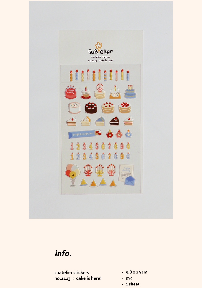Opis produktuZasady bezpieczeństwa"Naklejki ozdobne Tort koreańskiej marki Suatelier. Piękne i oryginalne naklejki samoprzylepne, które mogą być używane do ozdabiania notesów, kalendarzy, planerów, telefonów, kartek i wielu innych produktów. Szeroka gama motywów, od prostych i eleganckich do bardziej fantazyjnych i kolorowych pozwala na dopasowanie naklejki do indywidualnego stylu i gustu, nadając osobisty akcent oraz unikalność. Wykonane z wysokiej jakości materiałów oraz drukowane za pomocą nowoczesnych technologii, aby zapewnić trwałość i żywe kolory. Naklejki wykonane z tworzywa PVC. Wymiar arkusza 9,8x19 cm." x