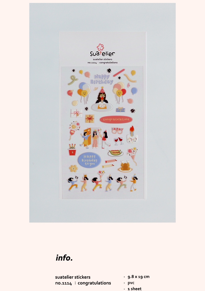 Opis produktuZasady bezpieczeństwa"Naklejki ozdobne Urodziny koreańskiej marki Suatelier. Piękne i oryginalne naklejki samoprzylepne, które mogą być używane do ozdabiania notesów, kalendarzy, planerów, telefonów, kartek i wielu innych produktów. Szeroka gama motywów, od prostych i eleganckich do bardziej fantazyjnych i kolorowych pozwala na dopasowanie naklejki do indywidualnego stylu i gustu, nadając osobisty akcent oraz unikalność. Wykonane z wysokiej jakości materiałów oraz drukowane za pomocą nowoczesnych technologii, aby zapewnić trwałość i żywe kolory. Naklejki wykonane z tworzywa PVC. Wymiar arkusza 9,8x19 cm."