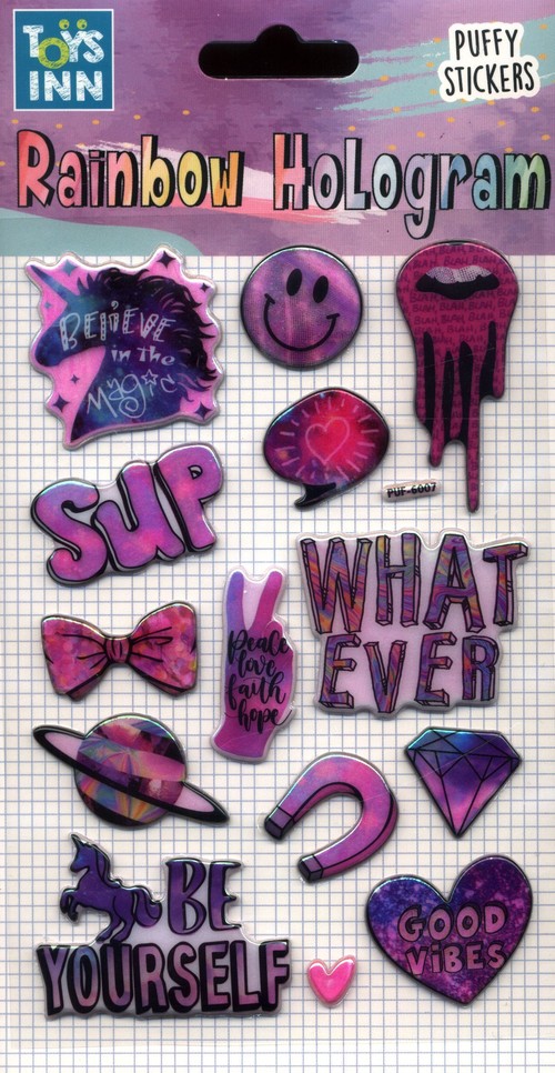Opis produktuZasady bezpieczeństwaNaklejki holograficzne Unicorn, to idealna dekoracja pamiętników, albumów czy zeszytów. W zestawie znajduje się około 10 szt kolorowych naklejek o różnych kształtach. Holograficzna powłoka z efektem tęczy zmienia ich kolory w zależności od kąta padania światła, dzięki temu naklejki są oryginalną, przyciągającą wzrok ozdobą. Naklejki wykonane zostały z wysokiej jakości materiałów, które są trwałe i odporne na zniszczenia ia