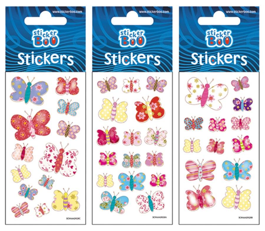 Opis produktuZasady bezpieczeństwaNaklejki STICKER BOO z grafiką z Motylami z pewnością przypadną do gustu dzieciakom, idealne do zdobienia rysunków, wszelkiego rodzaju prac plastycznych oraz kolekcjonowania, naklejki ze złotą obwódką. Dostępne w 3 odsłonach graficznych. Mix wzorów, towar wysyłany losowo, cena za 1 sztukę