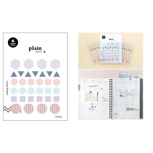 Seria Suatelier Plain to kolekcja prostych i eleganckich naklejek, idealnie nadających się do ozdabiania notesów, kalendarzy, telefonów, albumów czy innych przedmiotów. Rewelacyjnie sprawdzą się również jako znaczniki lub naklejki motywacyjne. Bogata gama motywów, od prostych i eleganckich do bardziej fantazyjnych i kolorowych, mnogość rozmiarów i kształtów, pozwala na dopasowanie naklejki do indywidualnego stylu i gustu, nadając osobisty akcent oraz unikalność. Znaczniki zostały wykonane z wysokiej jakości materiałów oraz wydrukowane za pomocą nowoczesnych technologii, aby zapewnić trwałość i żywe kolory. Naklejki wykonane z papieru. Wymiar arkusza 9,5x13 cm.
