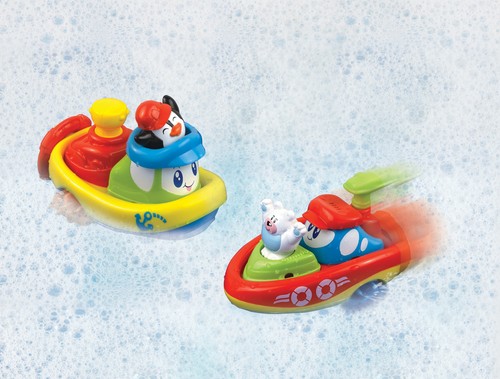 Ahoj! Wesoło pluskając nadciąga łódeczka ze zwierzakiem na pokładzie i zaprasza wszystkie Maluchy do wodnej przygody! Zabawkę można rozłożyć na drobne elementy i bawić się nimi oddzielnie lub złożyć je w całość. Nakręć łódkę, a pojedzie sama! Mały pasażer wypadł za burtę? Bez obaw, możesz go poratować zaczepionym z tyłu kołem ratunkowym! Zabawka rozwija wyobraźnię i kształtuje zdolności motoryczne Malucha. Do wyboru dwa wzory: Motorówka z Misiem polarnym lub Parostatek z Pingwinkiem.