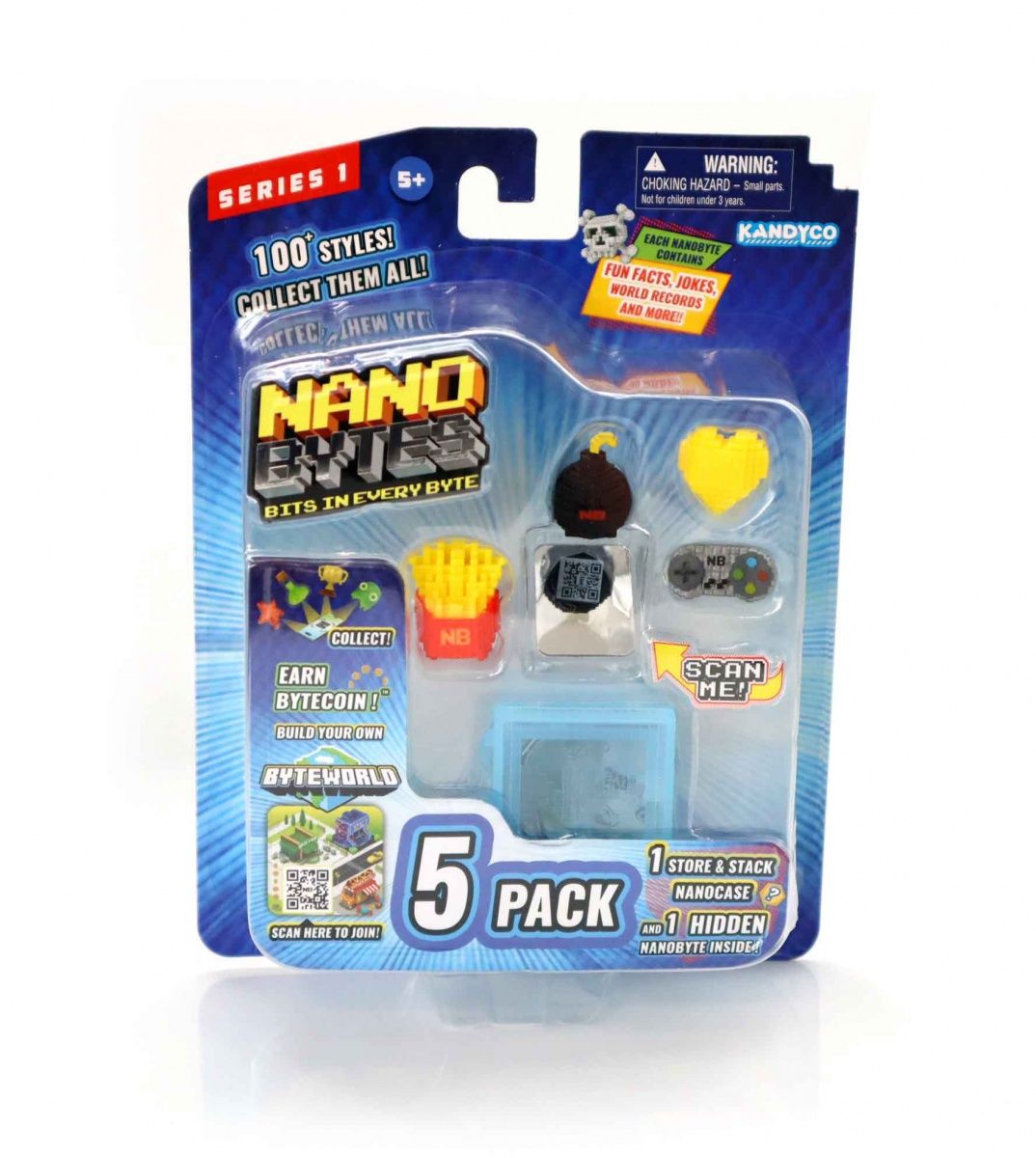 Blister 5 elementowy zawiera: 4 widoczne NanoByte, 1 ukryty NanoByte, 1 szkatułkę, naklejkę z kodem do użycia w aplikacji oraz przewodnik kolekcji