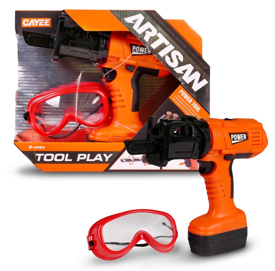 FUNKCJE: RUCHOMA PIŁA, W ZESTAWIE: PIŁA, OKULARY OCHRONNE, WYM. OPK: 28 X 23 X 7,5 CM., 3+