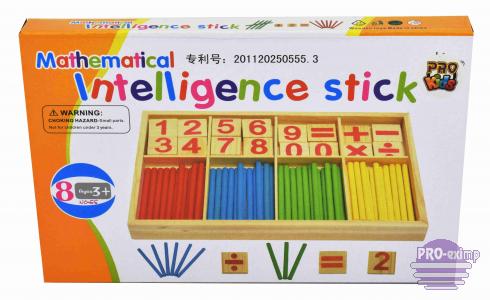 Zestaw drewnianych patyczków oraz klocków do nauki liczenia. Dzięki temu zestawowi dziecko w przyjemny sposób przez zabawę nauczy się liczyć. W zestawie mamy patyczki oraz klocki drewniane z namalowanymi znakami działań matematycznych a także cyframi. Dziecko układa odpowiednie elementy i przy pomocy patyczków liczy bądź uzupełnia wyniki działań.