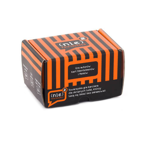 W każdej kolejce jeden z graczy czyta pytanie z czarnej karty a pozostali gracze odpowiadają za pomocą najzabawniejszej pomarańczowej karty. Celem gry jest tworzenie najzabawniejszych, dwuznacznych i często bezwstydnych kombinacji za które gracze otrzymują punkty. Karty zawierają napisy zarówno po polsku jak i po angielsku, dzięki czemu możecie zagrać z anglojęzycznymi znajomymi. Grę można łączyć z (nie)Powinieneś 1 więcej kombinacji, więcej śmiechu! Uwaga! Gra zawiera niecenzuralne teksty! Tylko dla osób pełnoletnich! Zasady gry tłumaczy się w mniej niż minutę Dowolny czas rozgrywki Kombinacje pełne czarnego humoru Niewielki rozmiar pudełka sprawia, że można wziąć ją wszędzie Świetnie sprawdza się jako przerywnik podczas spotkań ze znajomymi Pudełko zawiera 220 kart w tym: - 160 kart odpowiedzi - 51 kart pytań - 9 pustych kart (6 odpowiedzi i 3 pytań) kart na Twoje pomysły - instrukcję do gry x