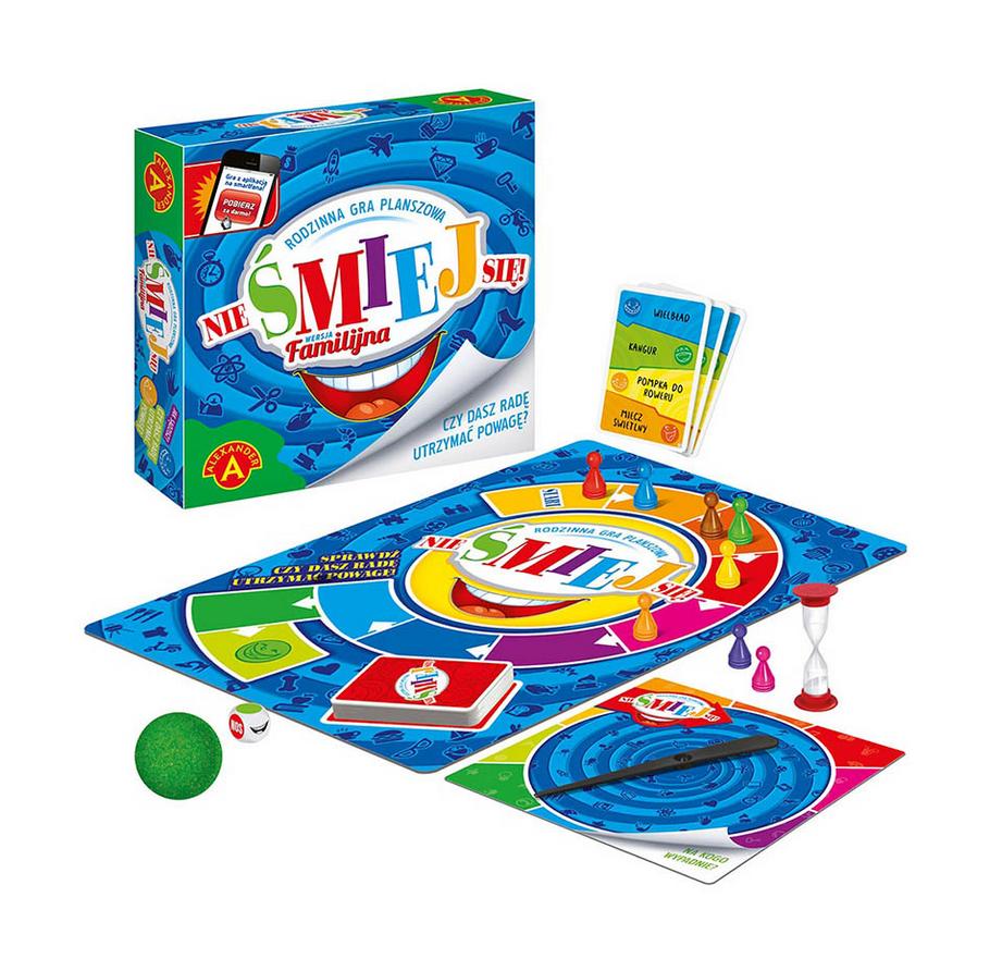 Opis produktuZasady bezpieczeństwaZepsuta pralka. Jak zabrać się do jej przedstawienia? Czy pokażesz wirowanie gestami i mową ciała? A może będziesz musiał zaśpiewać opis tego hasła? Czy Twój czarujący baryton wywoła salwy śmiechu wśród zgadujących? Czy zamaszyste ruchy biodrami sprowokują chichot u rywali? Nie Śmiej Się jest towarzyską grą planszową, w której co chwila wybuchają salwy śmiechu. Kłopot w tym, że aby zdobyć przewagę nad rywalami, trzeba jak najdłużej zachować powagę. Wersja familijna gry to jeszcze więcej wspaniałej zabawy dla całej rodziny. Dzięki większej planszy oraz aż 12 pionkom możesz grać w większym, rodzinnym gronie. Zawrotna ilość aż 660 haseł to jeszcze więcej wspólnej zabawy. Zawartość opakowania