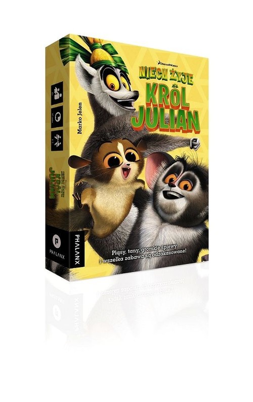 Król Julian do gra karciana oparta na fabule serialu animowanego Niech żyje Król Julian, opowiadającego o losach przesympatycznego, ale zapatrzonego w siebie lemura znanego z filmów Madagaskar oraz serialu Pingwiny z Madagaskaru studia DreamWorks. W tej szybkiej grze dla 2-5 graczy wcielacie się w role lemurów, które przybyły na imprezę organizowaną przez Króla Juliana i biorą udział w konkursie tańca. Z pomocą swoich wiernych kompanów: Morta i Maurice’a, Julian nauczy was podstaw dyskotekowych wygibasów, abyście już nigdy nie musieli podpierać palm na balangach. Zwycięzcą zostanie ten z was, kto najszybciej opanuje taneczne ruchy!