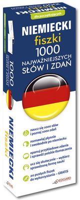 Dzięki nauce z fiszkami:- poznasz 1000 najważniejszych słów i 1000 zdań, dzięki którym zaczniesz swobodnie rozmawiać,- utrwalisz słówka i poznasz ich użycie w kontekście - przykładowe zdania,- szybko i skutecznie opanujesz słownictwo z aż 40 grup tematycznych,- ćwiczysz język o każdej porze i w dowolnym miejscu,- 20 pustych fiszek do uzupełnienia własnymi słówkami - GRATIS.Niemiecki fiszki 1000 najważniejszych słów wraz z 1000 przykładowych zdań to wyjątkowy zestaw tysiąca ponumerowanych, usztywnionych kartoników do nauki języka niemieckiego. Nauka z kursem pozwala szybko i skutecznie opanować najczęściej używane w języku niemieckim słówka. Opanowanie tego unikalnego zestawu umożliwia swobodną komunikację na poziomie podstawowym oraz czytanie ze zrozumieniem większości tekstów w języku niemieckim. Przykłady użycia wszystkich słów w zdaniu to gotowe wzorce komunikacyjne. Kurs podzielono na 40 praktycznych grup tematycznych, aby ułatwić zapamiętanie materiału metodą skojarzeń. Dodatkowo 20 czystych fiszek pozwala na uzupełnienie zestawu o własne słowa. Specjalny dobór słówek, przykłady użycia w zdaniach i załączone pudełko tworzą unikalny zestaw do skutecznej nauki języka niemieckiego.