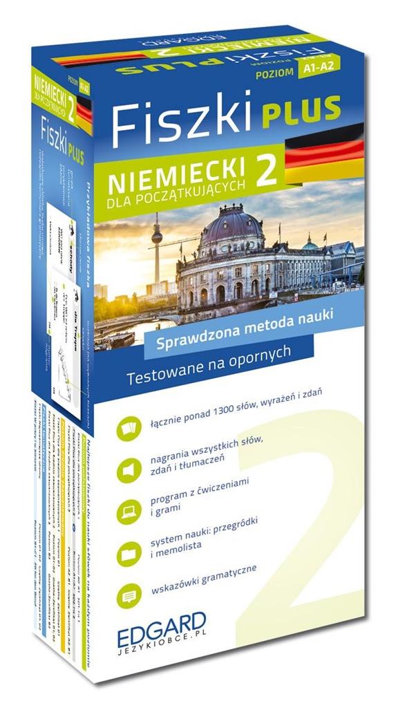600 fiszek + program i nagrania do pobrania + kolorowe przegródki + etui Niemiecki Fiszki PLUS dla początkujących 2 (A1-A2) to pakiet będący częścią rozbudowanego systemu nauki, dzięki któremu szybko i skutecznie nauczysz się słownictwa na każdym poziomie zaawansowania. Każdy zestaw Fiszek PLUS to starannie przygotowany materiał, wysokiej jakości nagrania wymowy wraz z programem komputerowym, memolistą i grami językowymi. Z Fiszkami PLUS nie tylko zapamiętujesz słówka, lecz także poznajesz słownictwo w kontekście, uczysz się nieregularnych form oraz popularnych zwrotów językowych. Od dziś nauka języka stanie się przyjemnością! - Ucz się 1500 słów, wyrażeń i przykładowych zdań - poznaj użycie gotowe wzorce komunikacyjne, utrwal reguły gramatyczne. - Poznaj prawidłowa wymowę. Słuchaj nagrań wszystkich słówek i zdań oraz ich tłumaczeń - Utrwalaj materiał z ćwiczeniami i grami językowymi dostępnymi w programie (do pobrania) - Ucz się skutecznie dzięki systemowi kolorowych przegródek. Sprawdź na memoliście, które słówka już znasz! - Twórz własne playlisty nagrań wymowy i ucz się mobilnie - w drodze do pracy lub szkoły!