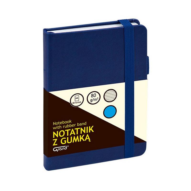 Notatnik A6/80K linia z gumką granatowy GRAND