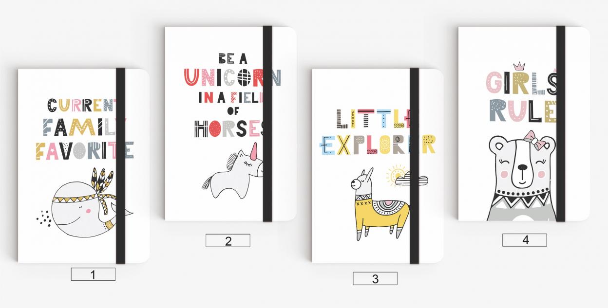 Notatnik 96 kartkowy z gumką w twardej okładce.
