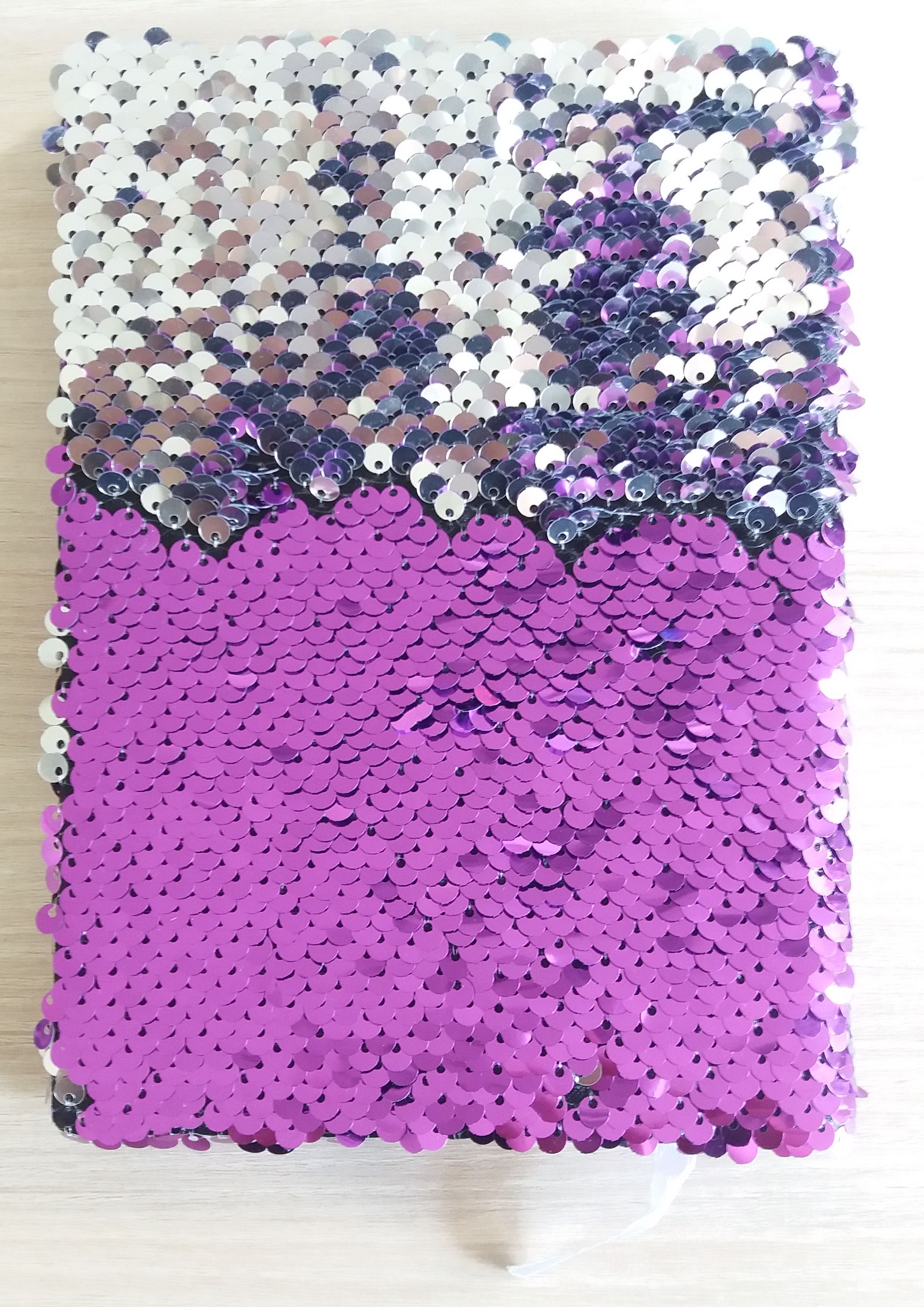 Notatnik cekinowy fioletowy, kartki w linie, 60 kartek.