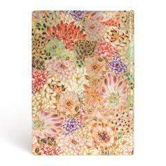 Notatnik Kikka Midi w linię niezwykłej marki Paperblanks. Pięknie zdobiona, wytłaczana okładka o niesamowitej fakturze. Koperta wewnątrz tylnej okładki na luźne, drobne notatki i paragony. Satynowa wstążka jako zakładka. Papier ekologiczny. Notatnik szyty. Ilość stron 144. Wymiary: 130x180 mm. Zamknięcie na gumkę.