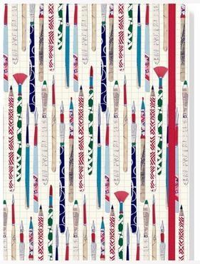 Notatnik w twardej, wytłaczanej okładce. Kartki w linię. Na wewnętrznej stronie okładki koperta. Notatnik zamykany na gumkę.
