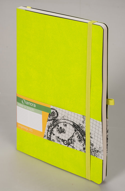 Rozmiar i typ wnętrza: A5, kropki 14 x 210 mm (wymiar zewnętrzny okładki) Oprawa miękka: ekologiczna z surowców naturalnych Papier 80 g Koperta z tyłu na karteczki Posiadają specjalną gumkę na długopis Wstążka w kolorze okładki Pierwsza i ostatnia strona notesu wykonana z ozdobnego papieru w kolorze ekri Notes zamykany jest na sprytną gumkę Ilość stron A5-192 x