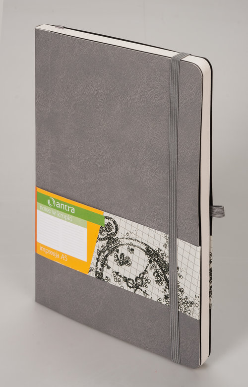 Rozmiar i typ wnętrza: A5, kropki 14 x 210 mm (wymiar zewnętrzny okładki) Oprawa miękka: ekologiczna z surowców naturalnych Papier 80 g Koperta z tyłu na karteczki Posiadają specjalną gumkę na długopis Wstążka w kolorze okładki Pierwsza i ostatnia strona notesu wykonana z ozdobnego papieru w kolorze ekri Notes zamykany jest na sprytną gumkę Ilość stron A5-192 x