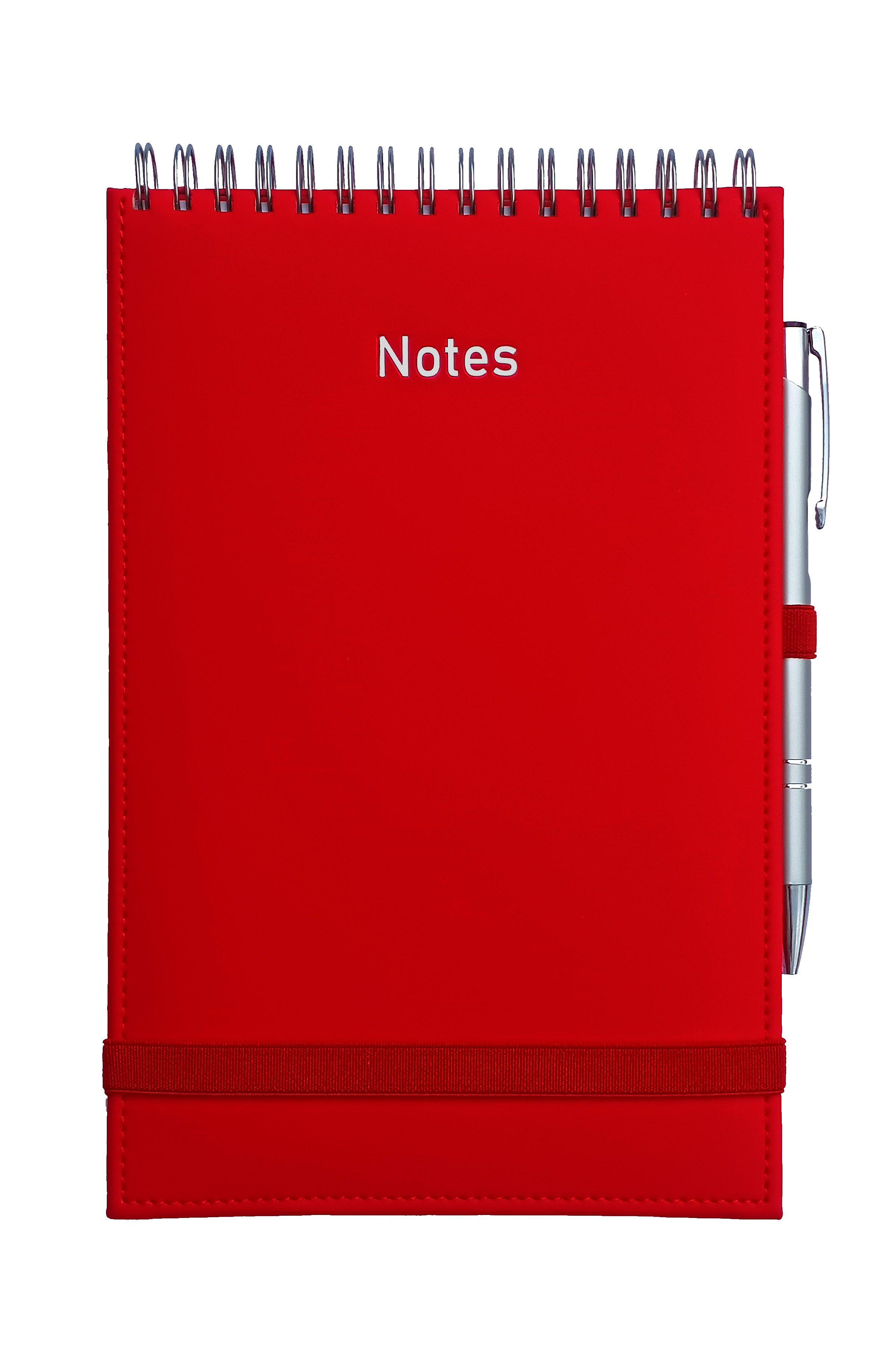 Notes A5 w oprawie Vivella ze spiralą po krótszym boku, gumka zamykająca i gumka na długopis w kolorze okładki, papier biały 70g/m2 w linię, ilość stron 160, napis "notes" SigmaChrom.