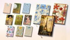 Notatnik w twardej, tłoczonej, metalizowanej prawie. Zamknięcie na gumkę, zakładka tasiemka.