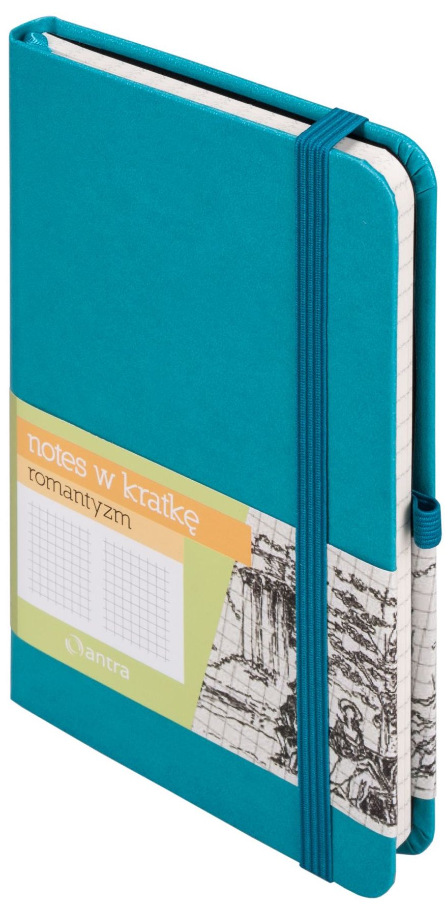 Notes A6 kieszonkowy z gumką Romantyzm kratka turkusowy
