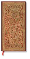 Notatnik niezwykłej marki Paperblanks. Wzór na okładce pierwotnie wykonany był z drewna bukowego i ciemnobrązowej skóry i użyty był do oprawy Podręcznika Wieczerzy Pańskiej Jeremiaha Schweiglinuma. Został wyprodukowany w prowadzonej przez Katharine Gerlachin drukarni Berg & Neuber w Norymberdze w Niemczech w 1568 roku. Wewnątrz tylnej okładki notes posiada kopertę na luźne, drobne notatki, wizytówki lub paragony. Satynowa wstążka jako zakładka. Papier ekologiczny 85g z certyfikatem FSC. Zadruk w linie. Notatnik szyty. Oprawa twarda. Ilość stron 176. Wymiary: 95x180 mm. Zamykany na gumkę.