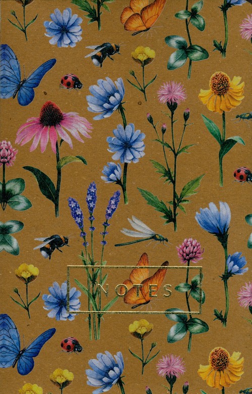 Okładka notesu z ilustracją kwiatów polnych oraz tłoczony na złoto napis tworzą piękne zestawienie z naturalną tekturą.