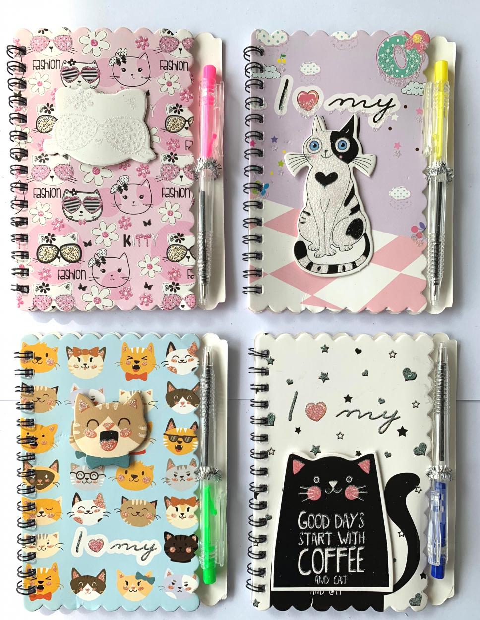 Opis produktuZasady bezpieczeństwaNotes na spirali z nadrukiem kotków. Do notesu dodany jest dodatkowo długopis. Ilość kartek:30 Rozmiar:140 x 103 mm Towar wysyłany losowo x
