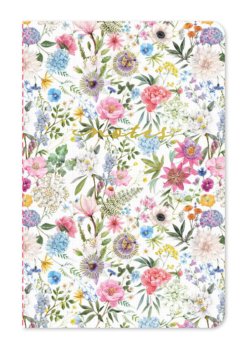 Romantyczna seria notesów z okładką zdobioną ilustracją kwiatową oraz subtelnie tłoczoną złotą folią.
