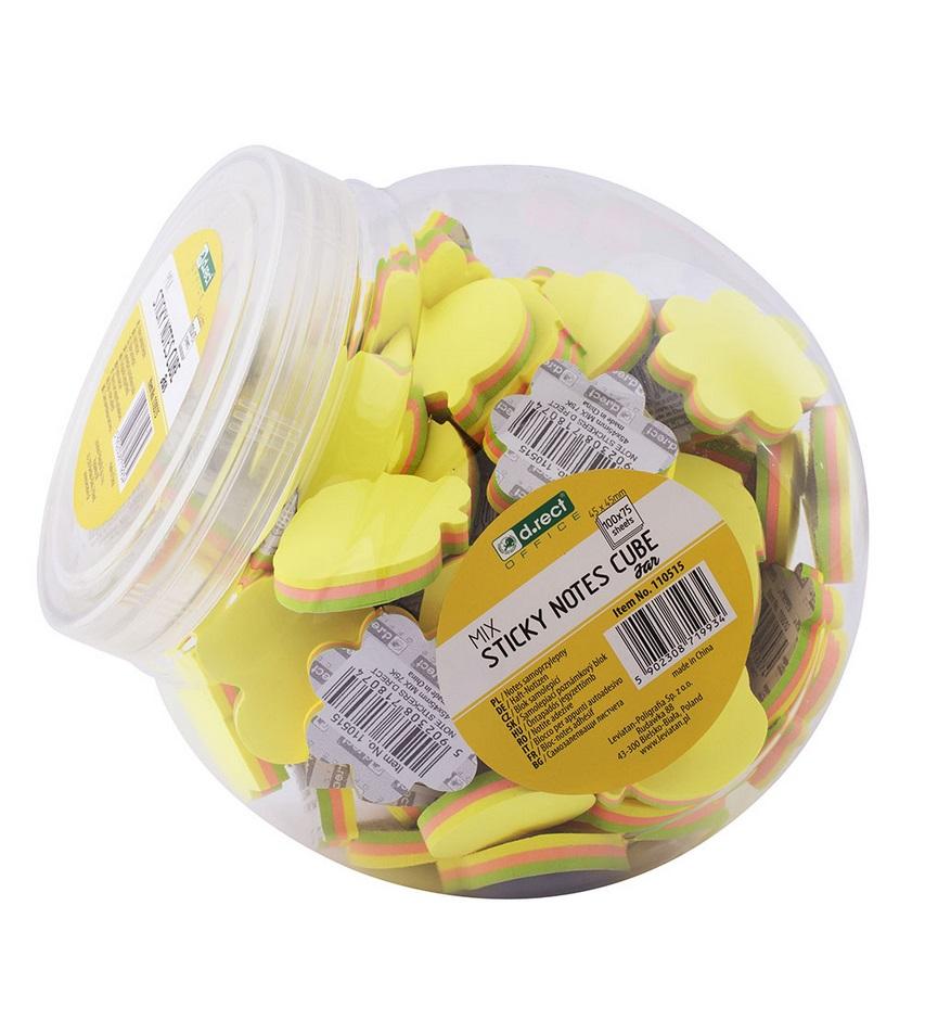 - klej umożliwiający wielokrotne przyklejanie i odklejanie pojedynczej karteczki - 100 notesow w różnych kształtach, po 75 karteczek - rozmiar: 45 x 45 mm x