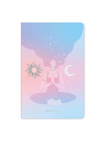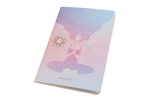 Okładka notesu z pastelową klimatyczną ilustracją oraz subtelnie tłoczone folią elementy grafiki i napisy, tworzą piękną kompozycję graficzną. Lniana tekstura okładki oraz kolor nici, pierwszej i ostatniej strony notesu uzupełniają stylowy wygląd notesu. Strony notesu w linie ułatwiają pisanie i planowanie zadań do wykonania. Notatnik sprawdzi się jako pamiętnik, szkicownik i miejsce na wszelkie codzienne notatki. Notes w kompaktowym formacie zmieści się do torebki czy plecaka. Możesz zabrać go ze sobą wszędzie i zawsze mieć przy sobie potrzebne szkice, plany i zapiski.