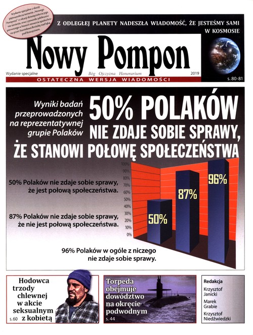 Książkowe wydanie czasopisma, którego początki sięgają pierwszych lat tego wieku, w wersji poszerzonej i uwspółcześnionej. Sto czterdzieści stron utrzymanych w poetyce absurdu i purnonsensu. „Nowy Pompon” to parodia prasy, medialnego szumu informacyjnego i sensacyjnych doniesień w starannym edytorsko wydaniu. Groteskowe artykuły, reportaże, wywiady, recenzje, biografie w połączeniu z unikalnymi zdjęciami i zaskakującą grafiką. Pełny kolor i humor we wszystkich odcieniach. Dla każdego.