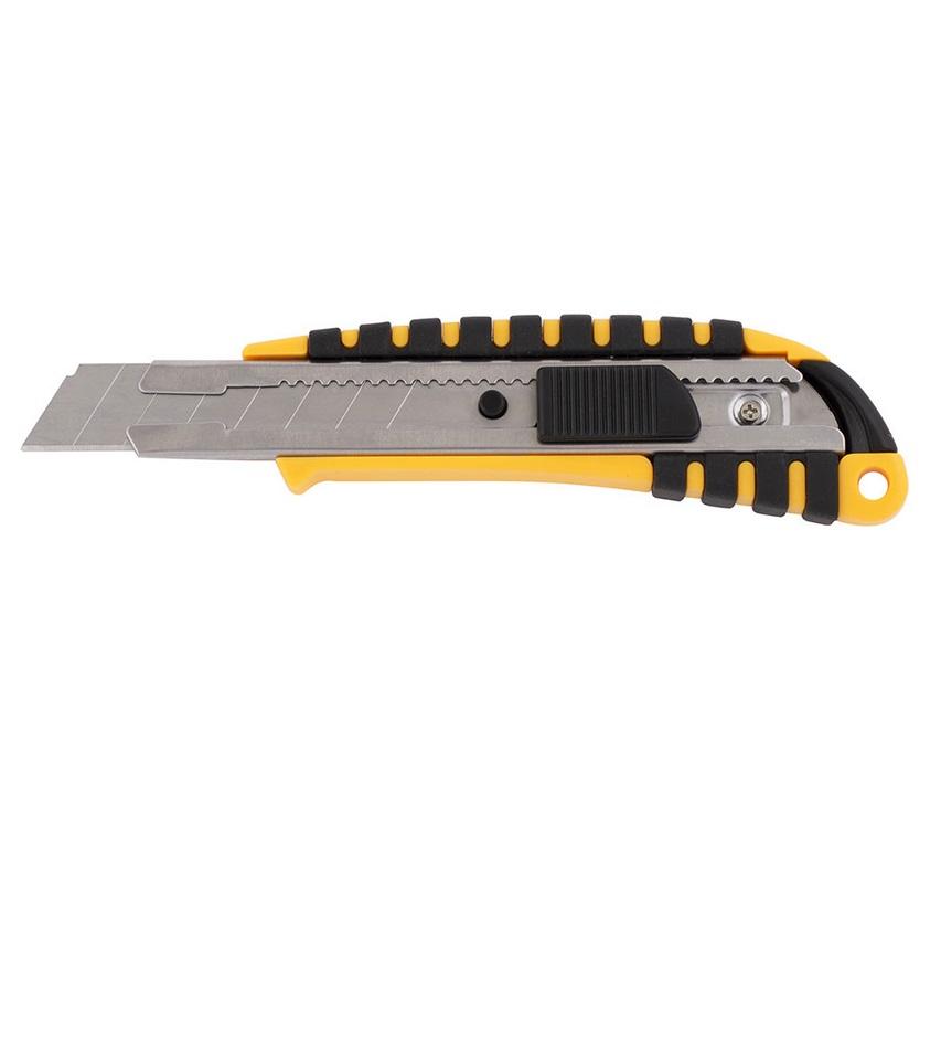 - automatyczna blokada położenia ostrza - ergonomiczna, wykonana z niełamliwego plastiku obudowa - gumowy żebrowany uchwyt - rozmiar ostrza: 100 x 18 mm x