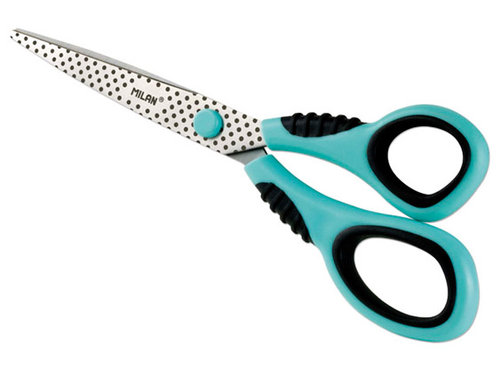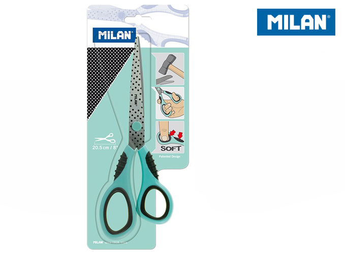Nożyczki biurowe o długości 20,5 cm z ostrzem ze stali nierdzewnej. Plastikowe ergonomiczne uchwyty w środku wyściełane gumą.