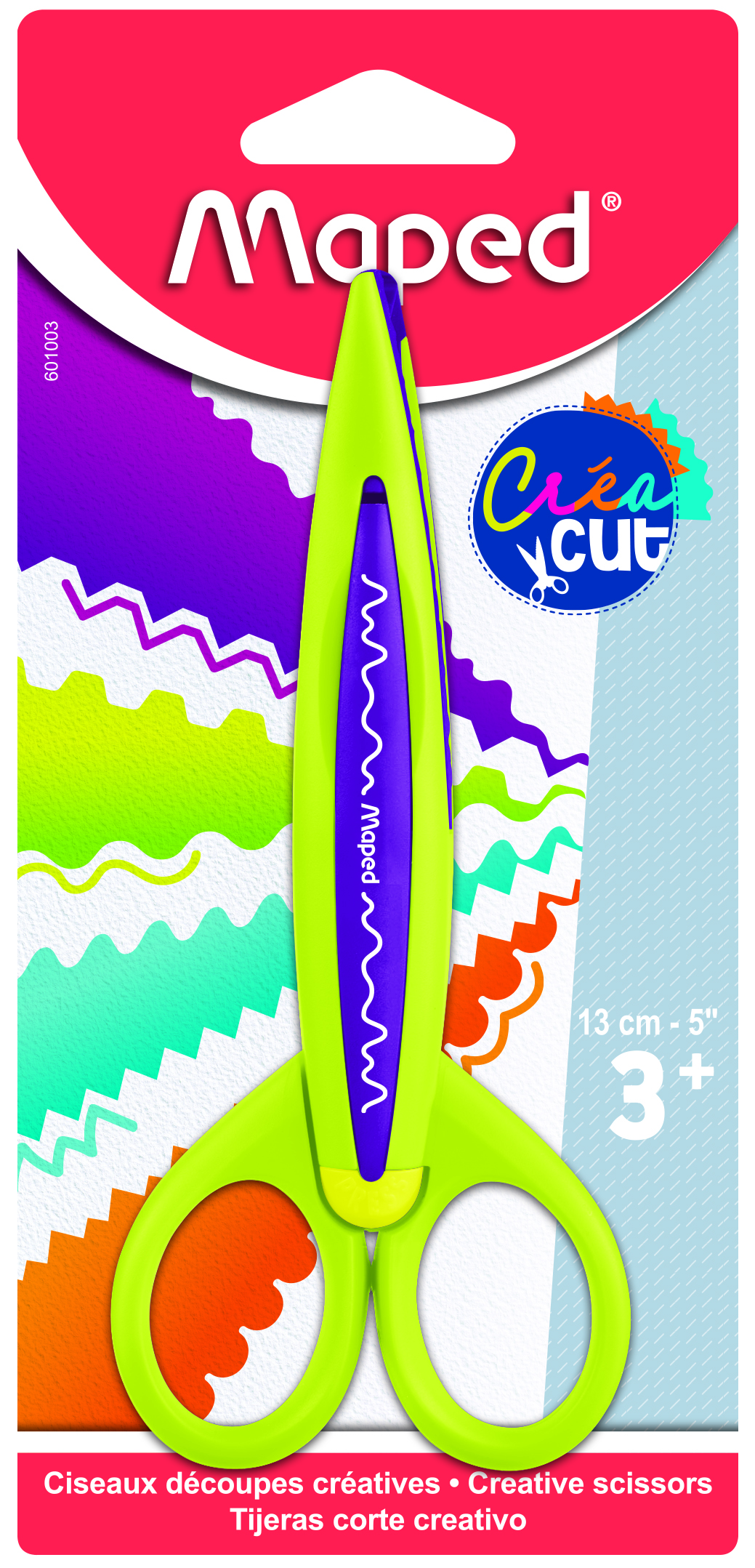 Plastikowe nożyczki z wymiemnnymi ostrzami do wycinania róznych wzorów. Doskonała zabawka rozwijająca zdolności manualne dzieci. Z 1 zestawem ostrzy.