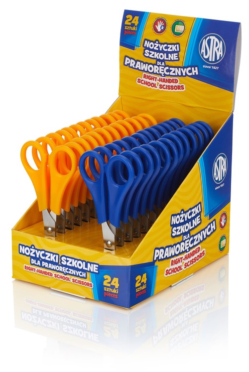 Opis produktuZasady bezpieczeństwaNożyczki szkolne dla praworęcznych ASTRA Opakowanie zbiorcze zawiera 24 sztuki. x