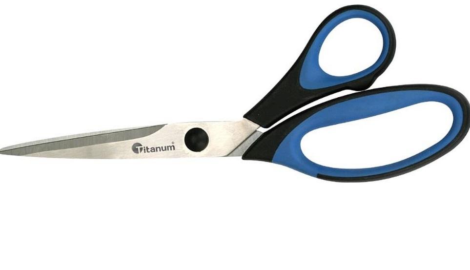 Nożyczki uniwersalne. Długość ostrza 8,4 cm, długość całkowita 21 cm. Stal nierdzewna.