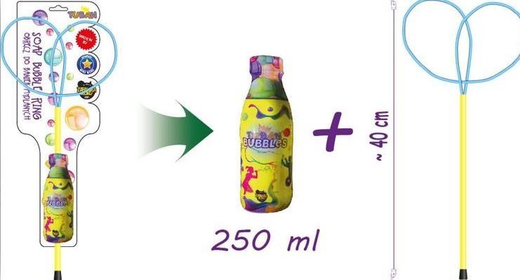 Zamocz sznurek w płynie firmy Tuban a następnie machaj sznurkiem w celu tworzenia baniek.