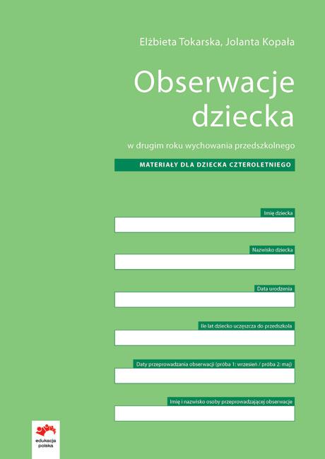 Obserwacje dziecka w II roku wychowania przedszkolnego. Materiały dla dziecka czteroletniego.To zeszyt dla każdego dziecka, zawierający pomoce do przeprowadzenia zadań pozwalających sprawdzić konkretne umiejętności określone w programie wychowania przedszkolnego Zanim będę uczniem. Zawiera kolorowe karty pracy z ilustracjami i elementami do wycinania. W zeszycie znajdują się również:zestaw pytań do rodziców dziecka rozpoczynającego edukację przedszkolną,karta do opisu obserwowanych sytuacji,indywidualny arkusz do odnotowywania wyników obserwacji pedagogicznej dziecka czteroletniego;karta do zapisu osiągnięć dziecka czteroletniego po rocznej edukacji przedszkolnej.