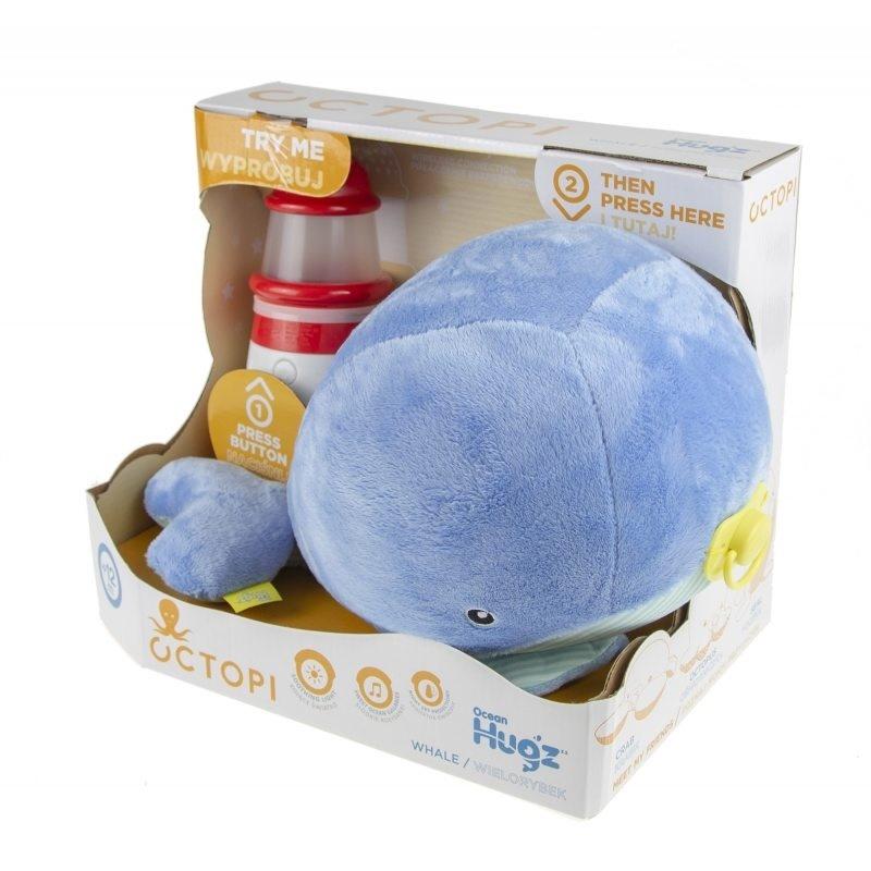 Opis produktuZasady bezpieczeństwaOcean Hugz - Maskotka Wielorybek i Projektor Latarnia Morska DKM6869. Gdy przytulisz pluszaka, latarnia morska zaczyna grać kołysanki i świecić. Możliwe jest również włączenie samej latarni morskiej, bez konieczności przytulania pluszaka. Latarnia Morska gra kołysanki, świeci delikatnym światłem i wyświetla gwiazdki na suficie. Posiada okrągłą podstawę, dzięki której może się delikatnie kołysać. Ośmiorniczka w kolorze fioletowym posiada żółty, plastikowy smoczek. Latarnia rozświetli pokój i ukołysze Twoje dziecko do snu. x