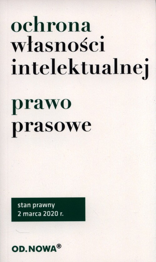 Kolejne wydanie zbioru przepisów niezbędnych do kompleksowego zapoznania się ze współczesnym stanem prawnym w dziedzinie ochrony własności intelektualnej. Polecany zwłaszcza studentom. Na zawartość tomu składają się ustawy: o prawie autorskim i prawach pokrewnych, prawo własności przemysłowej oraz prawo prasowe (uwzględniono zmiany, które weszły w życie nowelizacją z dnia 27 października 2017 r. Zaletą książki jest jej praktyczny, poręczny format, przejrzysty układ graficzny i niska cena. Łatwą orientację w materiale umożliwia obszerny skorowidz. Stan prawny: styczeń 2020 r.